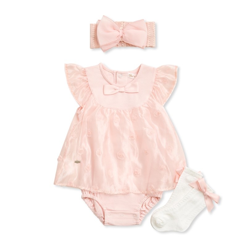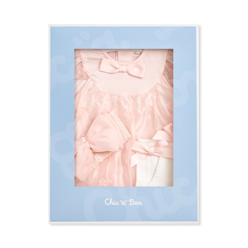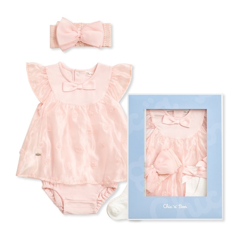 Chic a Bon 粉嫩小花兔裝禮盒/連身衣3件組禮盒 (兔裝+髮帶+襪子)