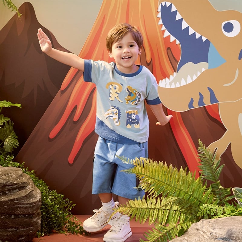 恐龍探險趣造型雙口袋五分褲 (吸濕排汗)