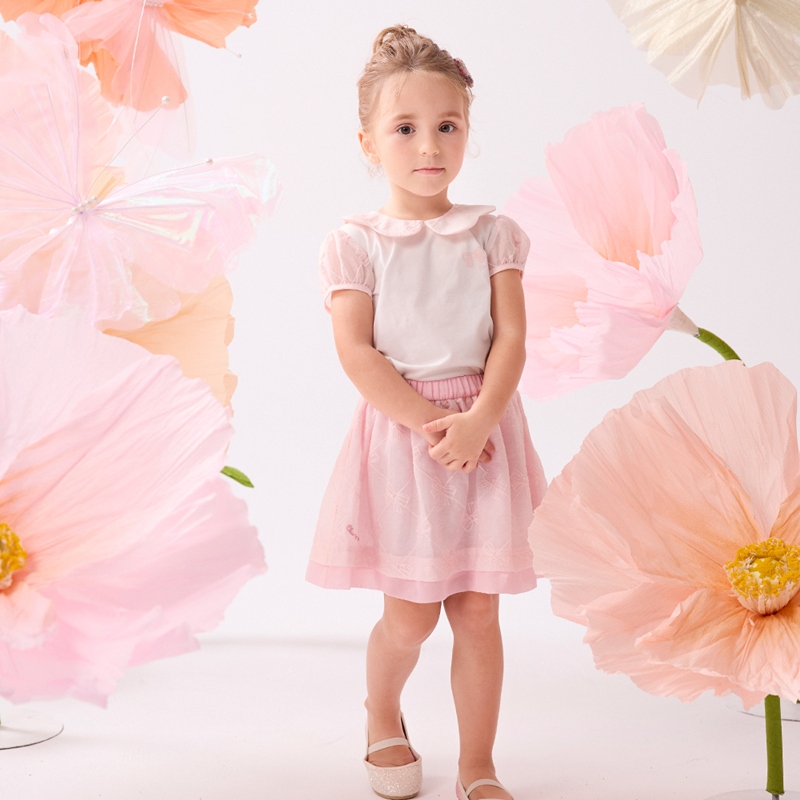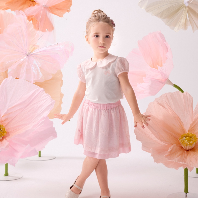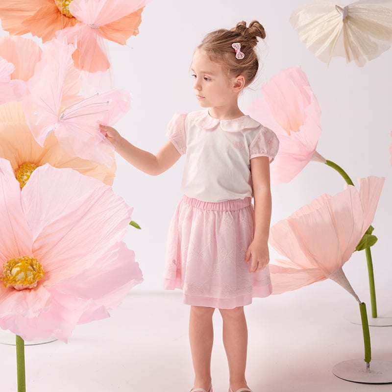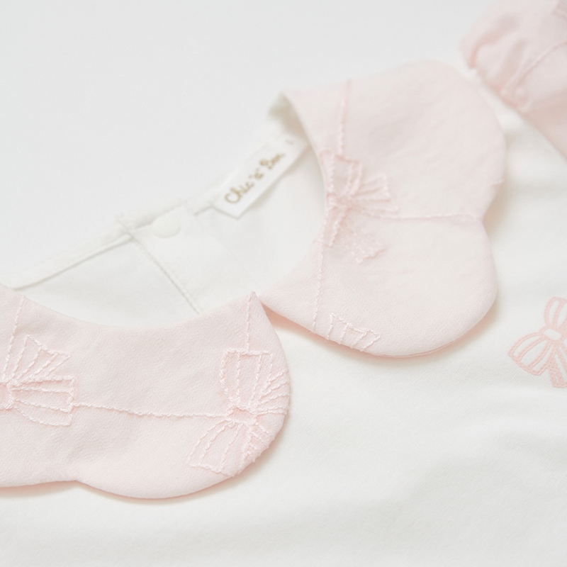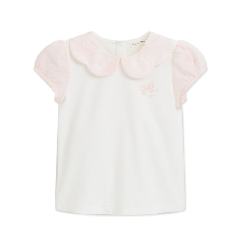 花蝶熊翻領泡泡袖上衣