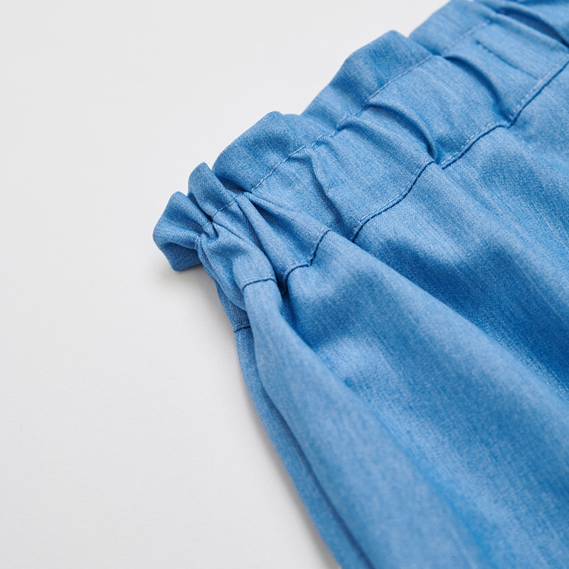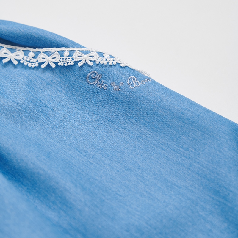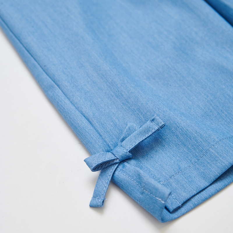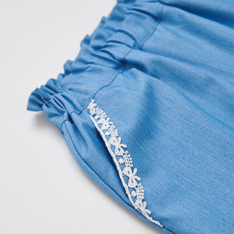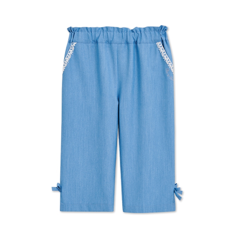 花蝶熊滾邊蕾絲藍色九分褲