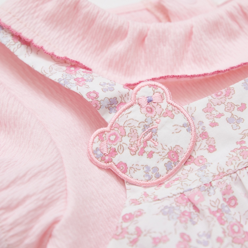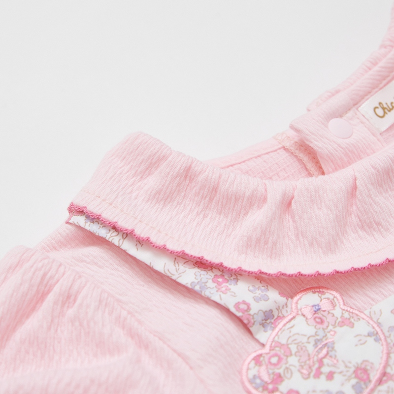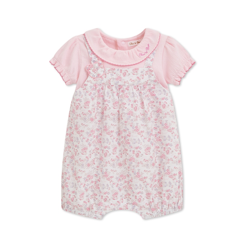 花蝶熊碎花造型翻領短袖兔裝