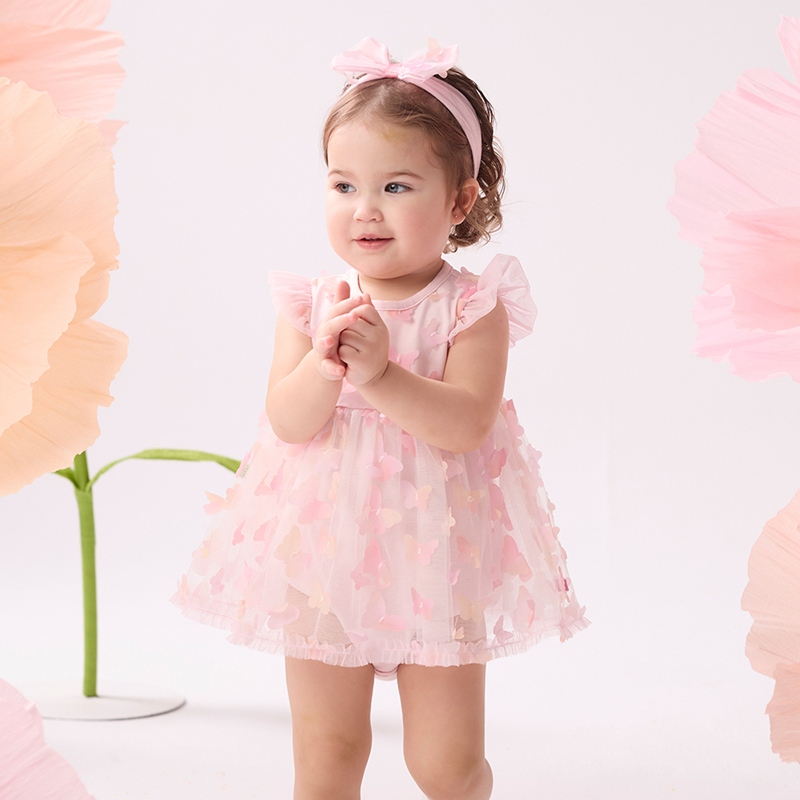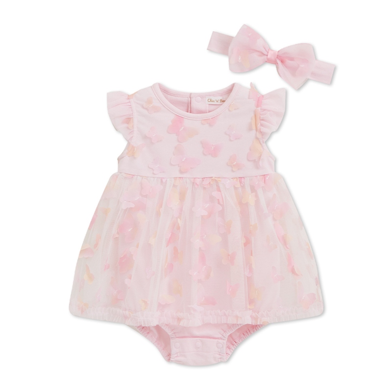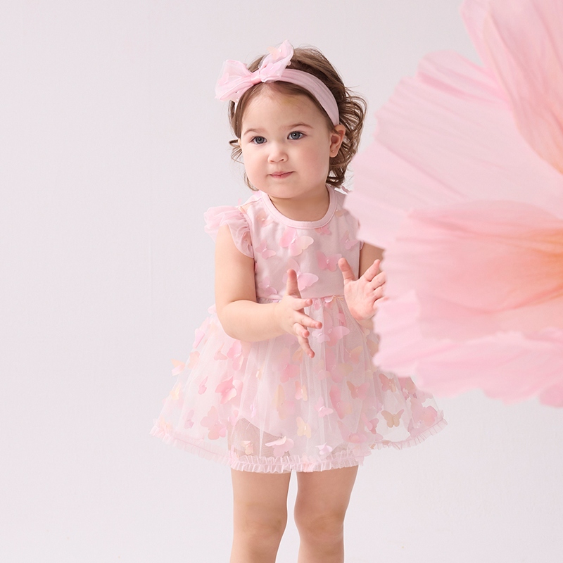花蝶熊立體蝴蝶短袖兔裝-附髮帶