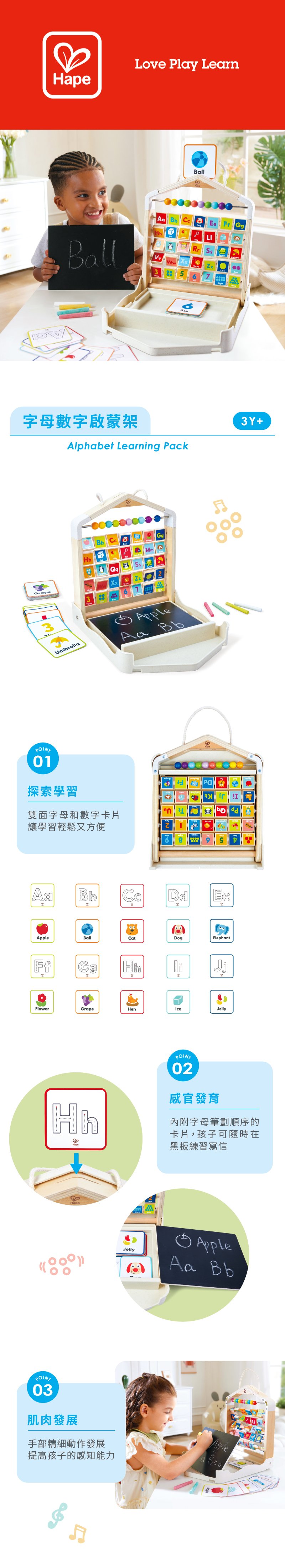 書寫啟蒙,內附顯示字母筆劃的卡片,這將啟蒙孩子學習寫信。