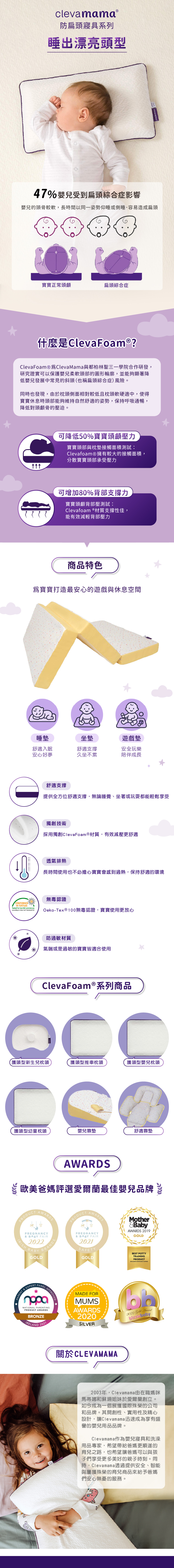 【組合商品】Cleva Foam® 護頭型新生兒枕(0-6M適用)+三合一多用途地墊-黃白 96x65x7cm