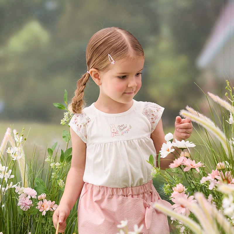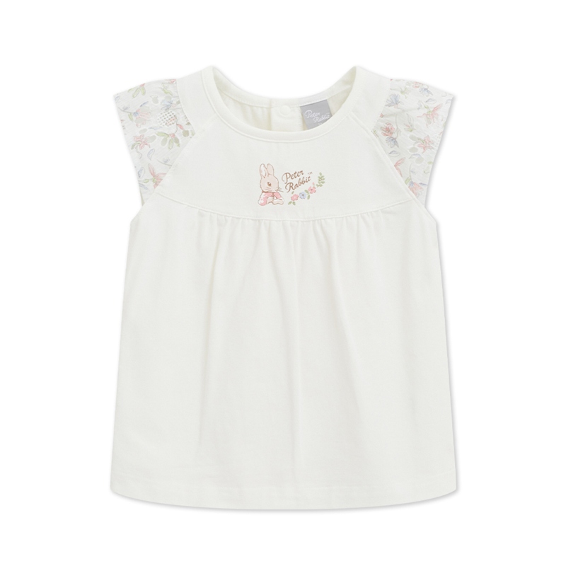 花語比得拼接袖抓皺上衣