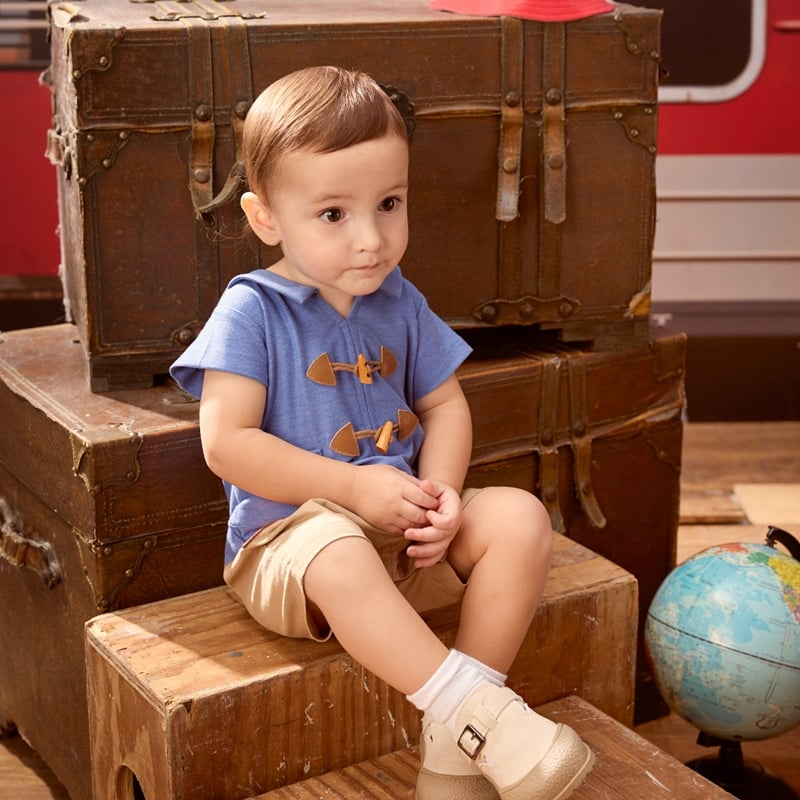 柏靈頓之旅牛角扣翻領短袖兔裝